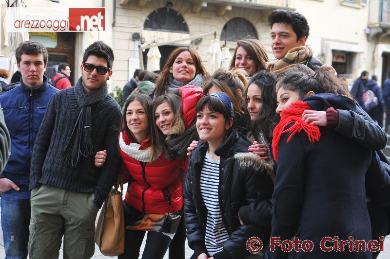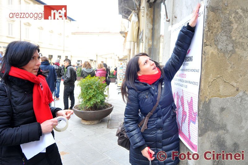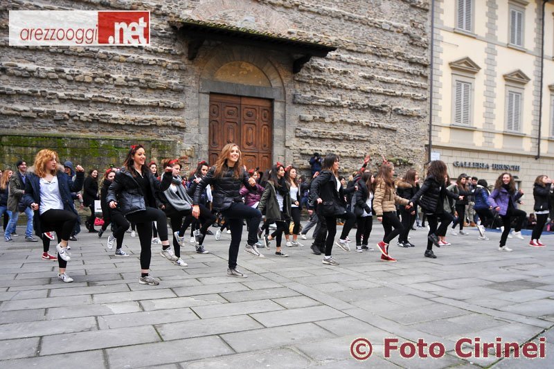 Erano in tante, ma anche in tanti questa mattina in piazza San Francesco per dire no alla violenza sulle donne. E come lo hanno fatto? Leggendo poesie a cui è seguito un flash mobe, in pratica un ballo con coreografia di gruppo che si fa sulla strada, in mezzo alla gente. L'iniziativa era “One Billion Rising”, alzati e balla contro la violenza di genere.Un evento mondiale, che si è svolto in 190 Paesi, di cui anche Arezzo è stata protagonista nel 15esimo anniversario della sua istituzione. E lo è stata con le parole e la danza di due classi del Liceo Coreutico “Piero della Francesca” che hanno ballato sulle note di “Break the Chain”, colonna sonora della manifestazione. Colore dominante il rosso. Nei fiocchi dei capelli delle ragazze, nei palloncini ancorati a terra e poi lanciati in cielo ed anche tra gli spettatori che alla fine sono stati coinvolti nel ballo. C'era gente di tutte le età. Tutti uniti per dire no alla violenza sulle donne, una piaga dilagante nel nostro Paese come nel resto del mondo. E sicuramente oltre ai sorrisi, alla voglia di fare, alla voglia di cambiare il futuro, un altro aspetto straordinario è stata la massiccia presenza di uomini. Alcuni di loro, soprattutto giovanissimi, hanno detto di non considerare uomini coloro che aggrediscono le donne, coloro che le picchiano, le minacciano, le uccidono. Ed hanno chiesto più rispetto. Frasi che fanno riflettere, ma soprattutto sperare che il domani sia diverso, sia migliore.