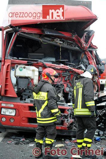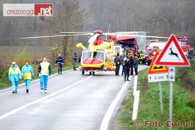 Schianto tra camion ad Anghiari, in prossimità dell'incrocio del Sasso, lungo la strada verso Arezzo. Sul posto è immediatamente intervenuto il 118 che ha allertato anche l'elisoccorso Pegaso. Uno dei conducenti ha perso la vita, si tratta di Aurelio Rideiro Macedo, brasiliano residente a Pesaro, che era alla guida di un furgone di surgelati, mentre l'altro, un 60enne di Ponte Buriano (M.M.) che guidava un tir della Imer, è rimasto incastrato tra le lamiere. Una volta estratto dai vigili del fuoco le sue condizioni sono apparse subito gravi ed è stato trasferito con l'elisoccorso al policlinico di Siena. Restano ancora da chiarire le cause dello scontro che è avvenuto sulla strada che dalle Ville di Monterchi va verso Anghiari, la Statale 73. Sul posto la polizia stradale di Arezzo. La viabilità è interrotta per consentire le operazioni di soccorso, dai carabinieri. Il traffico verso Arezzo è stato deviato sulla Libbia (Provinciale 43).