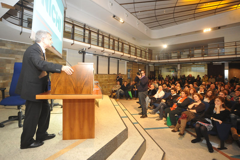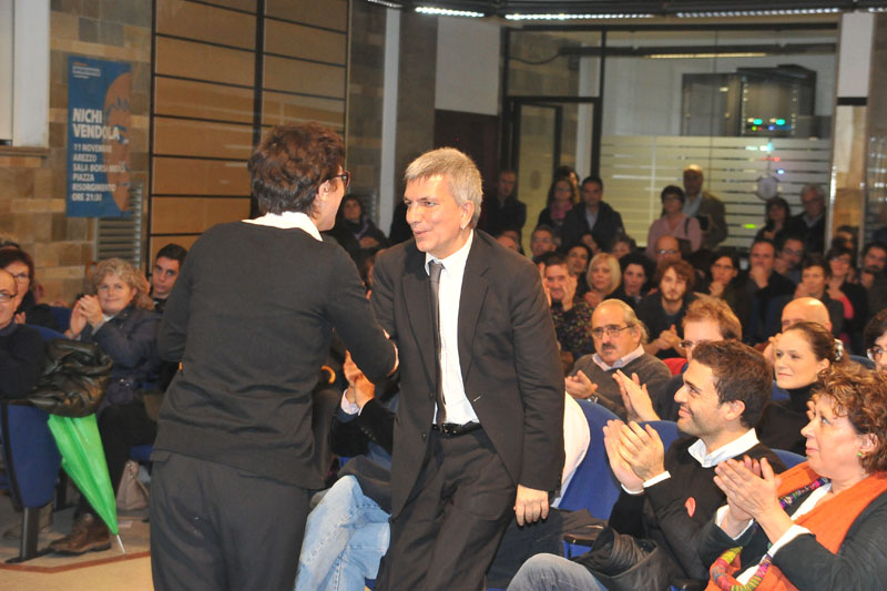 Dopo Renzi e Bersani le primarie del centrosinistra stasera tornano protagoniste ad Arezzo con il candidato Nichi Vendola che ha tenuto il suo intervento alla Borsa Merci. In molti hanno sfidato il maltempo per essere presenti all'appuntamento, anzi la sala è letteralmente gremita. I posti a sedere sono tutti occupati e molti sono seduti a terra, sugli scalini di ingresso, e tanti altri in piedi. Vendola è arrivato poco dopo le 22. Parallelamente all'iniziativa è stato attivato un apposito ufficio elettorale in cui è possibile iscriversi per votare alle primarie.