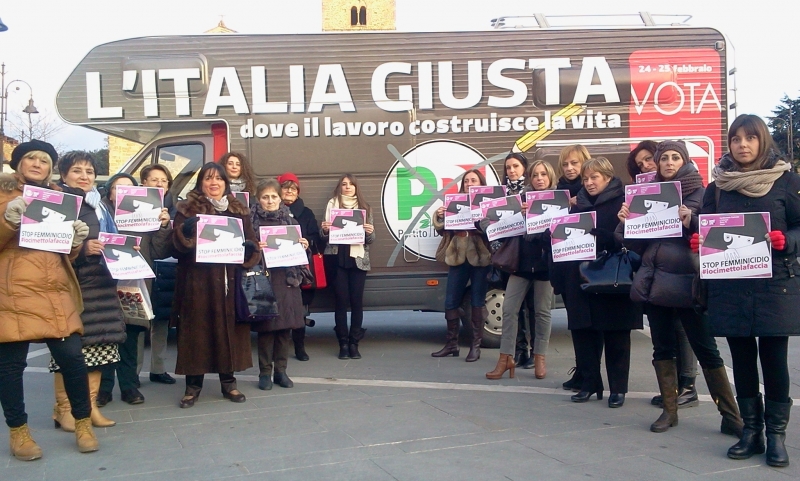 Oggi le donne del Coordinamento Provinciale e Comunale del partito democratico si sono incontrate tutte in P.zza Sant'Agostino in occasione dell'iniziativa di presentazione dei candidati PD al Parlamento. Le donne democratiche hanno sostenuto la campagna nazionale "Io ci metto la faccia", in difesa dei diritti che quotidianamente vengono violati dagli attacchi frontali e violenti anche a dispetto della loro integrità fisica. All'iniziativa hanno aderito e preso parte anche gli uomini del Partito Democratico. In Italia ancora l'85% della violenza è domestica e ci sono 400.000 bambini che assistono quotidianamente alla violenza in famiglia. Bersani ha infatti appoggiato il disegno di legge per il contrasto al Femminicidio che recepisce la Convenzione di Istanbul per ora in Italia solo ratificata. Le Donne Democratiche chiedono al nuovo governo la pronta approvaione del Disegno di legge contro il Femminicidio. Il PD ha candidato il 40% di Donne nelle sue liste a dimostrazione di un sempre e rinnovato impegno a sostegno della rappresentanza femminile ed in linea alla prospettiva europea.
