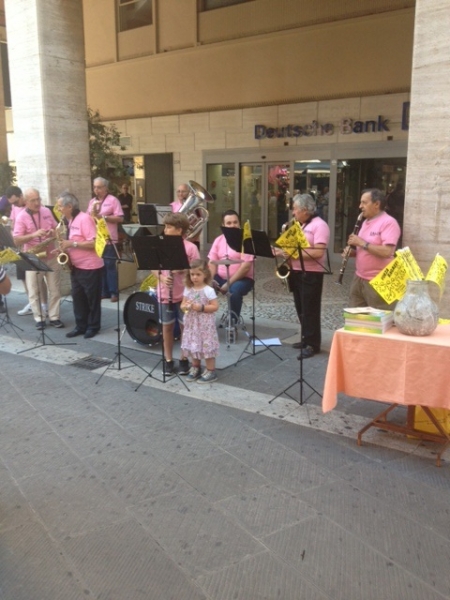 Debutto oltremodo promettente del "Gruppo Musicisti Amici del Calcit" che, alla sua prima uscita in Piazza S.Iacopo, non solo ha fatto ascoltare melodiosi brani musicali creando quella piacevole atmosfera che ha incantato gli astanti, ma ha altresi' raccolto la somma di E. 159,20 esigua, rispetto alle necessita' del Comitato, ma importante perche' a questa prima uscita faranno seguito molte altre che affiancheranno le numerose iniziative promosse dal Calcit.